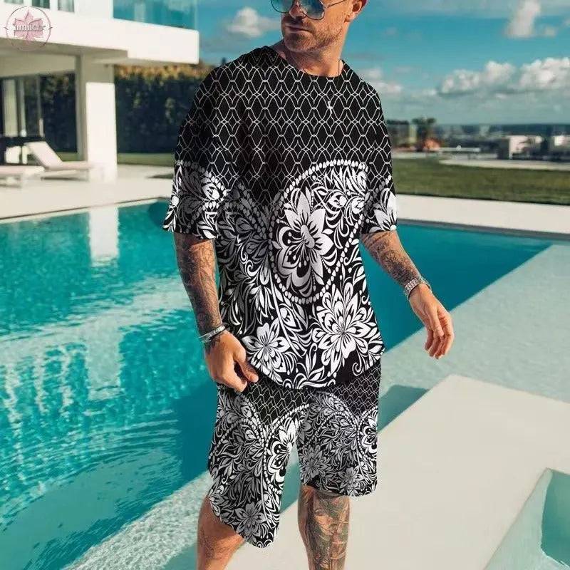 3D Printed Men's Round Neck Short Sleeved Casual T-Shirt Set