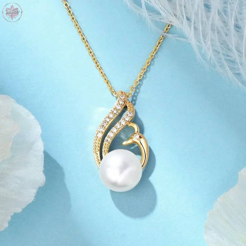 Little Swan White Freshwater Pearl Necklace Women's Fashion and Elegance Gold Wrapped Pendant