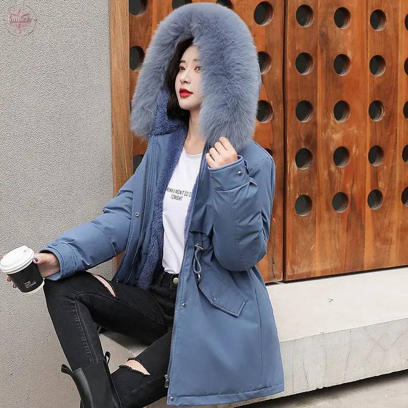 Winter Cotton Padded Clothes Women's Medium Length Loose Warm Keeping Style Overcomes Big Wool Collar Hooded Thick Cotton Padded Clothes