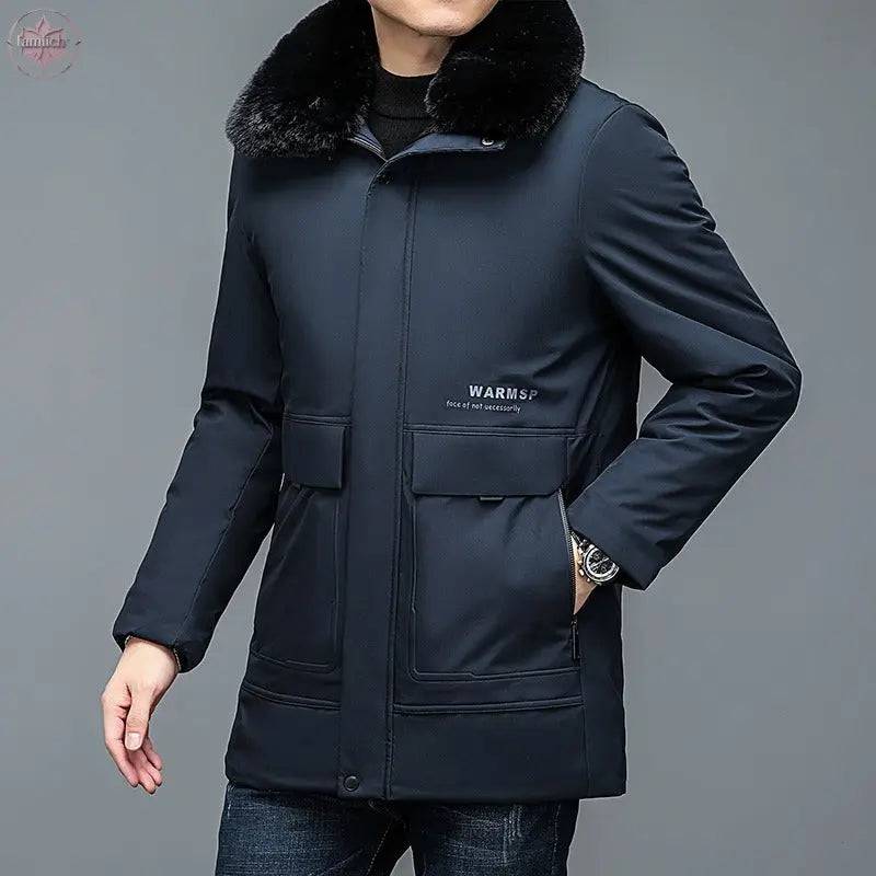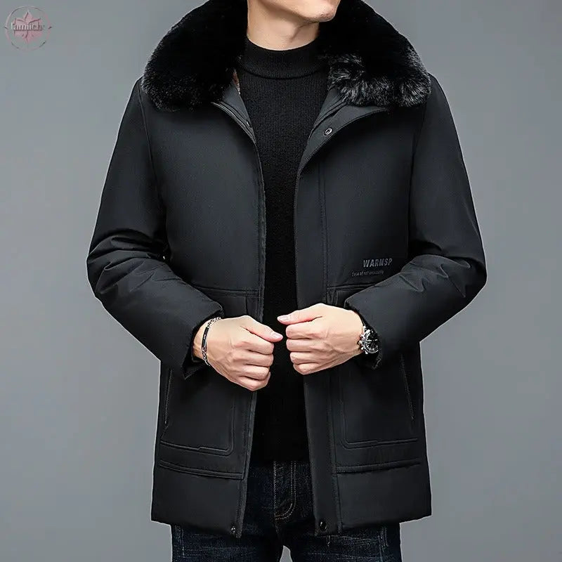 In summary, our Winter Men's Cotton Clothes with a removable fur collar is the ideal choice for young men who want to stay warm and stylish this winter. The solid color and long business suit design make it a versatile addition to any wardrobe, while the removable fur collar adds a touch of sophistication. With its combination of aesthetics, practicality, and comfort, this coat is sure to become a favorite go-to piece in your winter wardrobe.