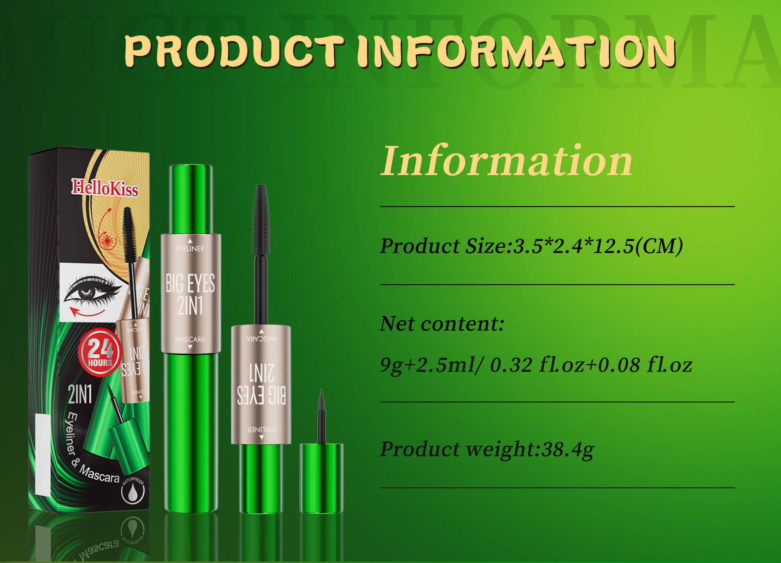 2-in-1 long and thick double-ended mascara, natural and smooth, no smudge cross-border makeup eyeliner