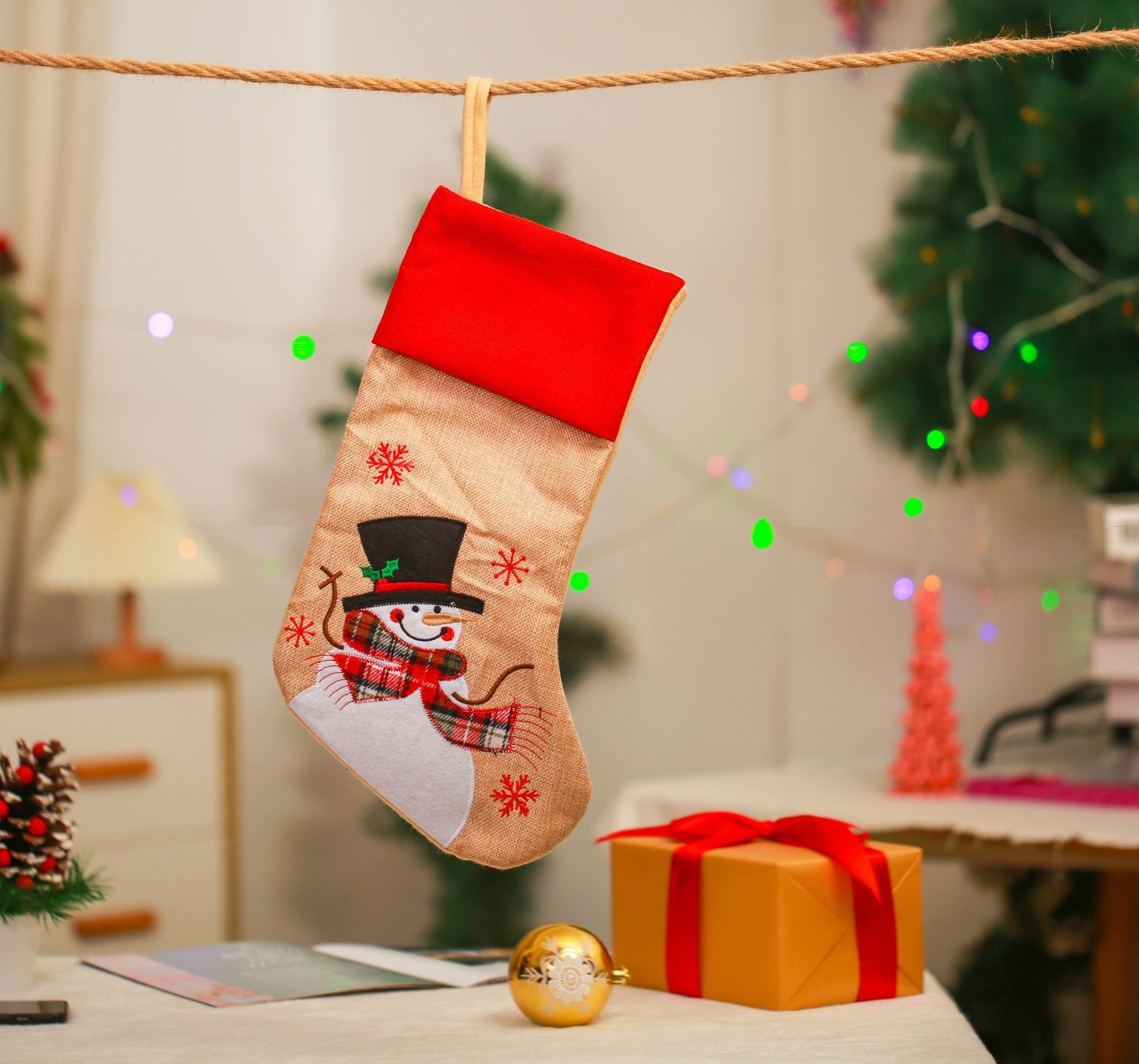 Christmas Decoration Linen Red Bordered Old Man Snowman Christmas Socks Christmas Gift Bag Candy Socks