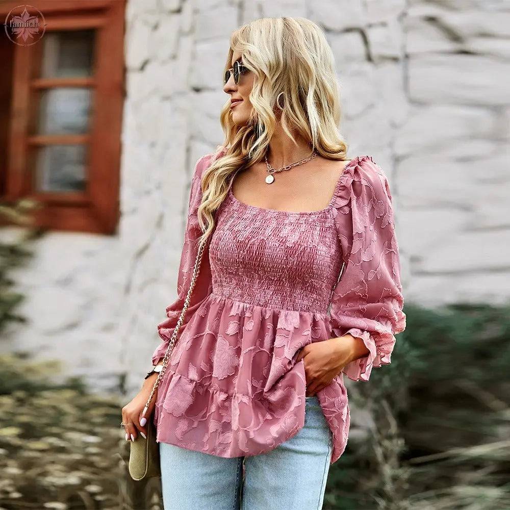 French square neck long top 2022 spring and autumn versatile top shirt woman