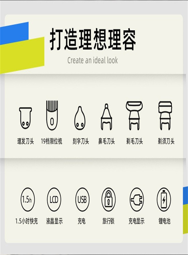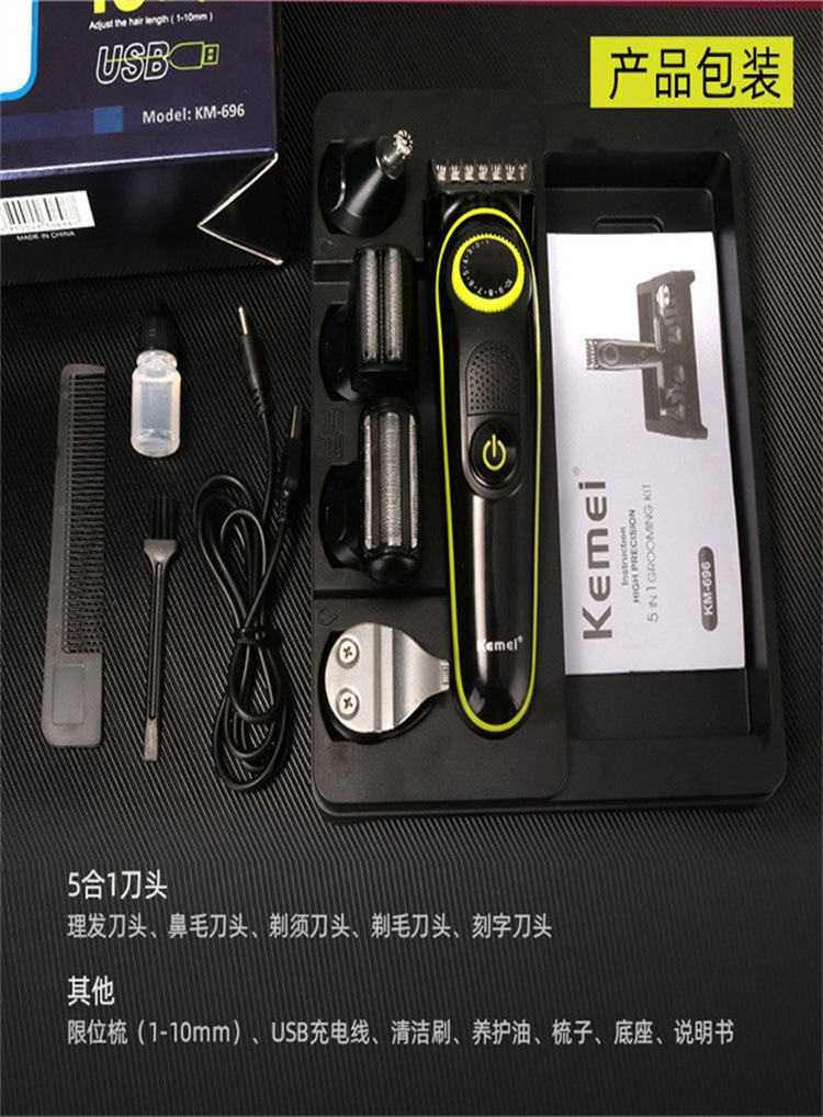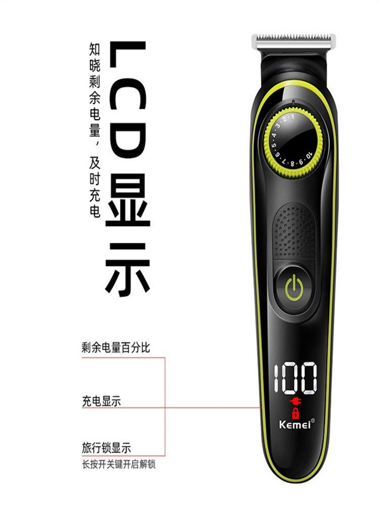 Kemei KM-696 Electric Clipper suit Multifunctional Household Shaving Nose Hair LED LCD Digital Display Charging Hair Clipper