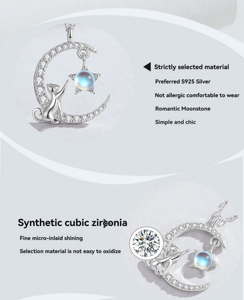 Sterling Silver Cat Moon Necklace